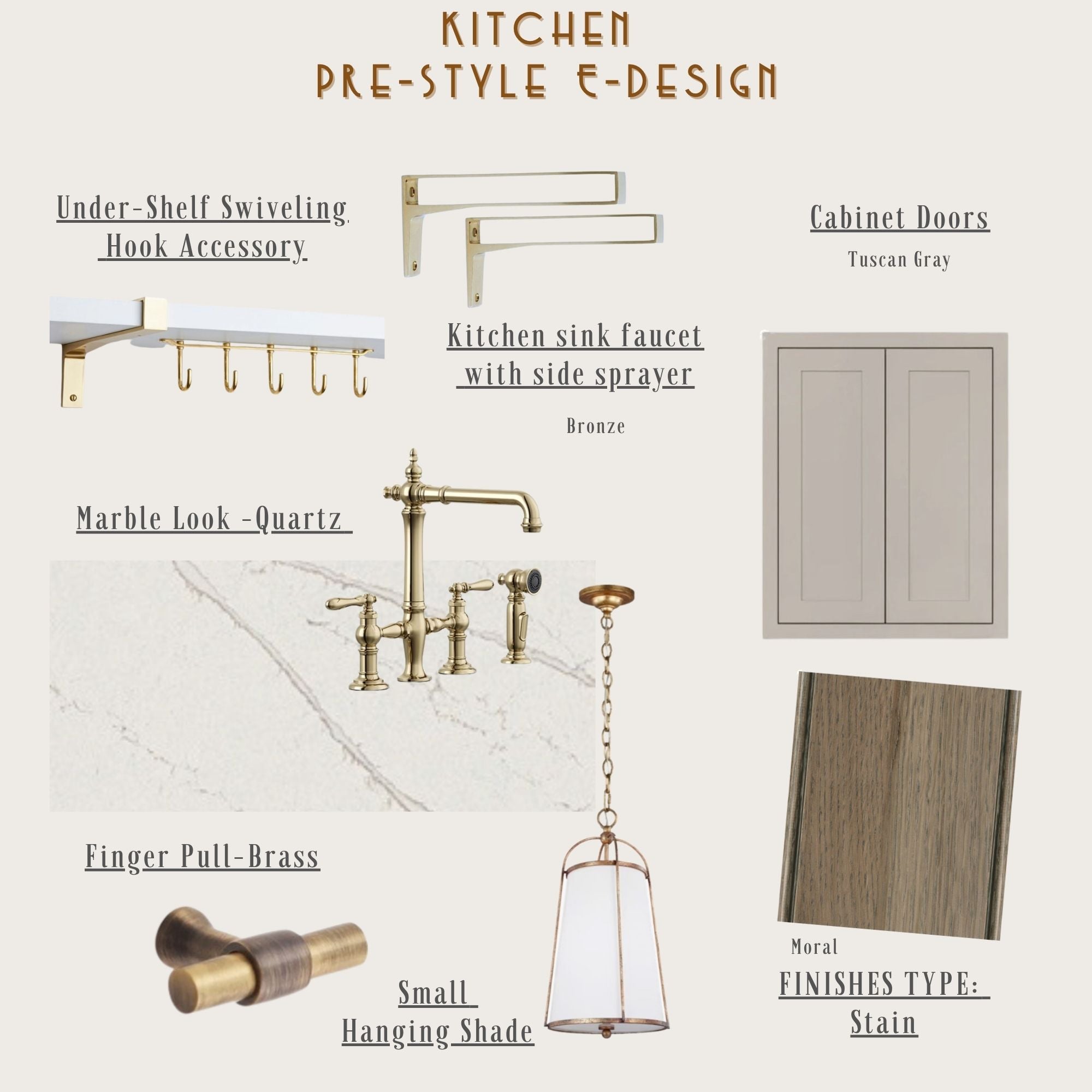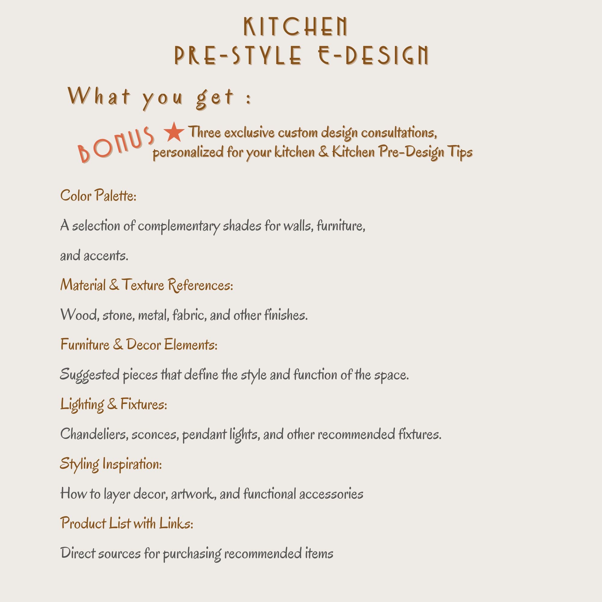 Transform your kitchen effortlessly with our Kitchen Pre-Style E-Design package, perfect for homeowners, renters, and anyone looking to refresh their space.